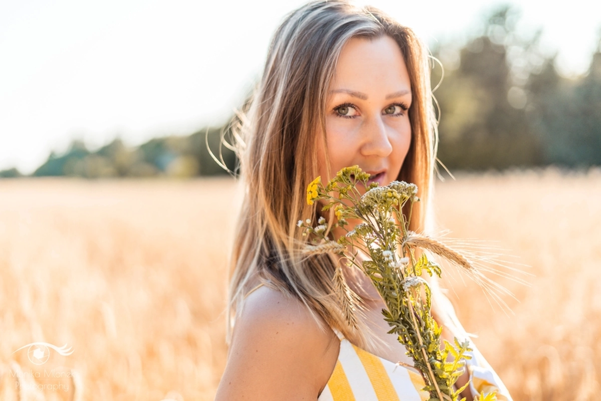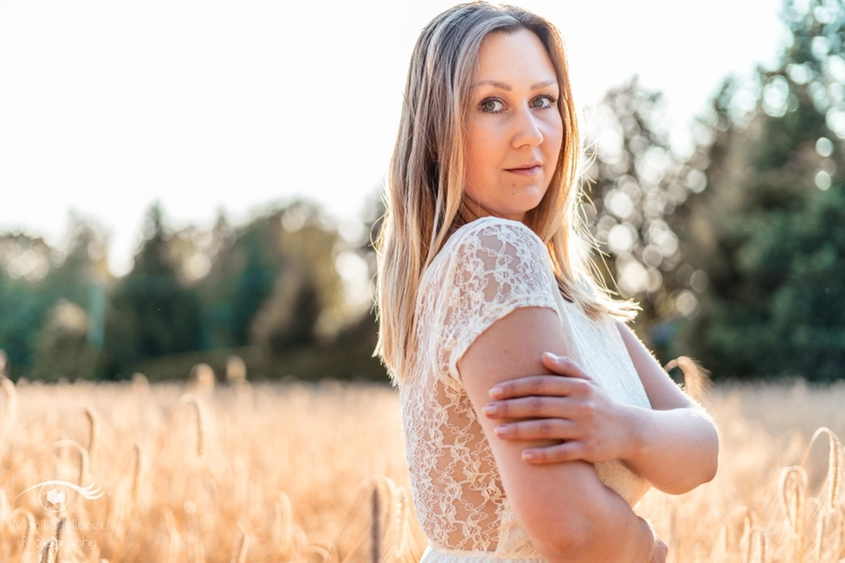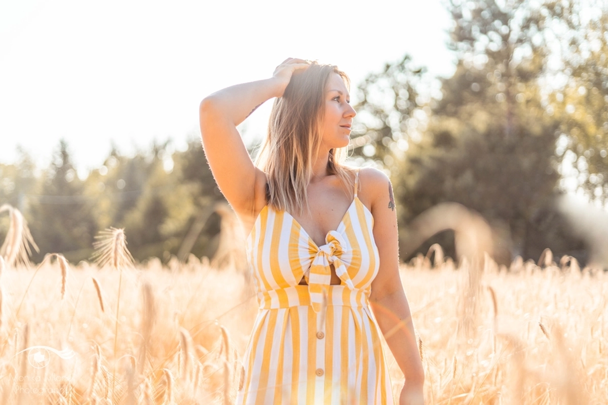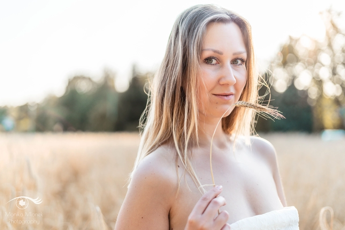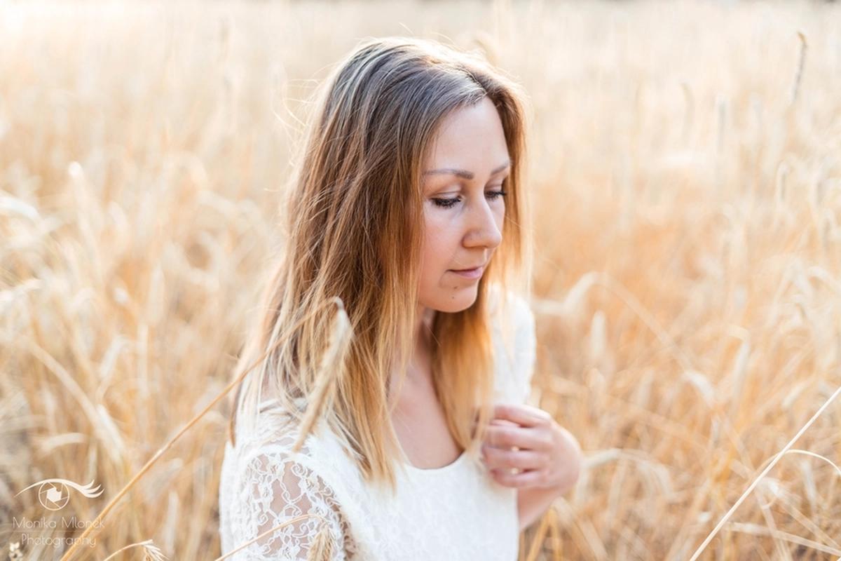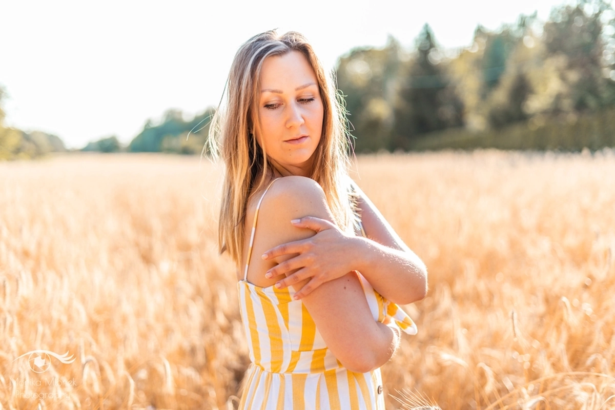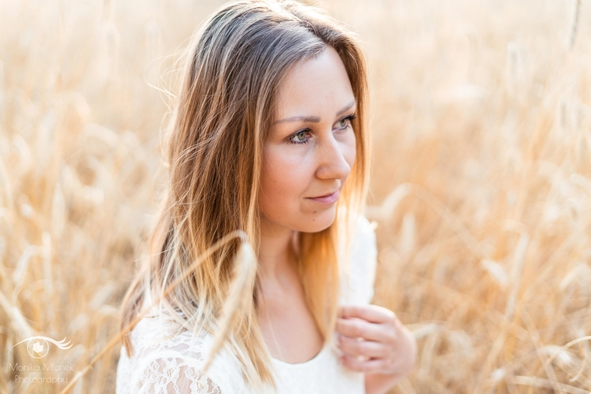 Lubię chodzić na spacery i jeździć rowerem w mniej zaludnionych obszarach, właśnie tak znalazłam miejsce na tą sesję. Przechodziłam obok pola, zobaczyłam piękne zboże i od razu wiedziałam, że chcę tam wykonać zdjęcia. Poszukałam osoby chętnej na sesję. w ciągu trzech dni napisała do mnie koleżanka Marta. Rozpoczęłam od razu przygotowania. Wszytko ustaliłam, najmniejsze szczegóły, makijaż, ubrania, rekwizyty. Na wyznaczonym miejscu spotkałyśmy się tuż przed złotą godziną. Marta, pomimo braku doświadczenia w modelingu, była bardzo naturalna i odważna, dzięki czemu sesja przebiegła bardzo szybko i sprawnie. Miałam ze sobą trzy sukienki do zmiany stylizacji dla Marty i mały bukiet z polnych kwiatów. Podczas sesji towarzyszyła nam muzyka, myślę, że praca z muzyką tworzy luźniejszą atmosferę i pomaga kreatywności. Przechodzący ludzie pozytywnie odbierali moją twórczość, uśmiechali się do nas i pytali o sesję ?