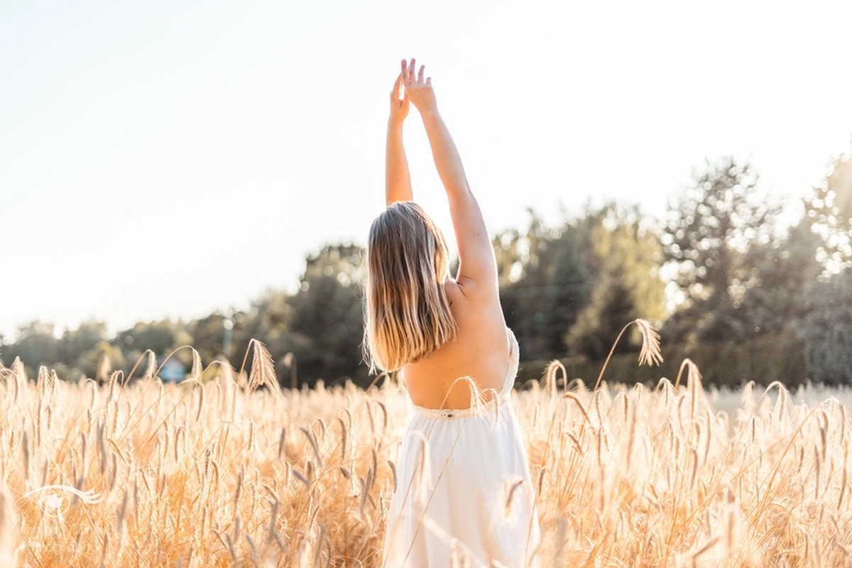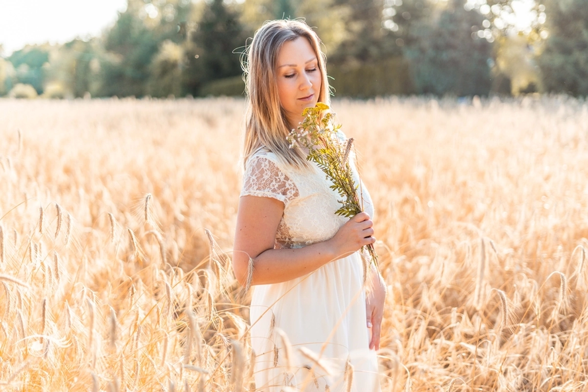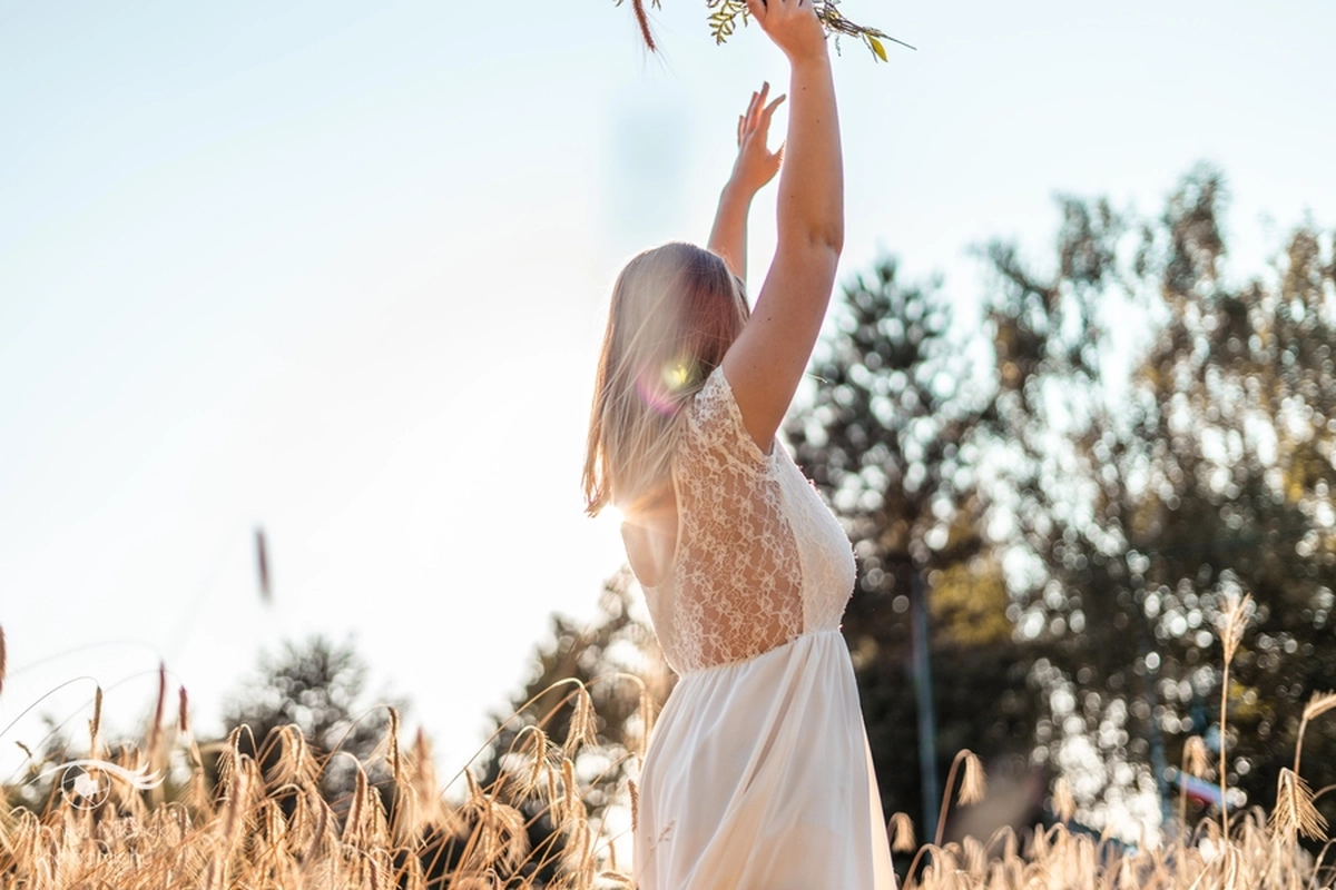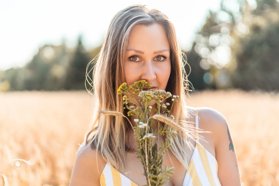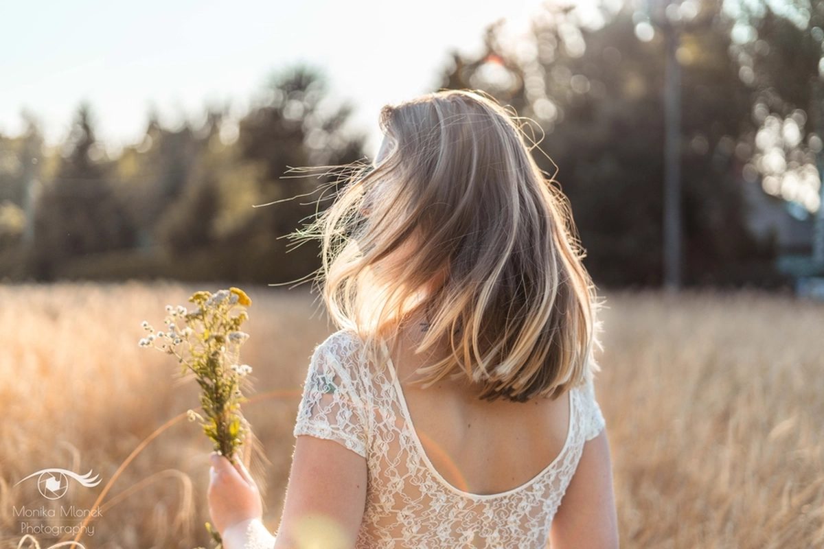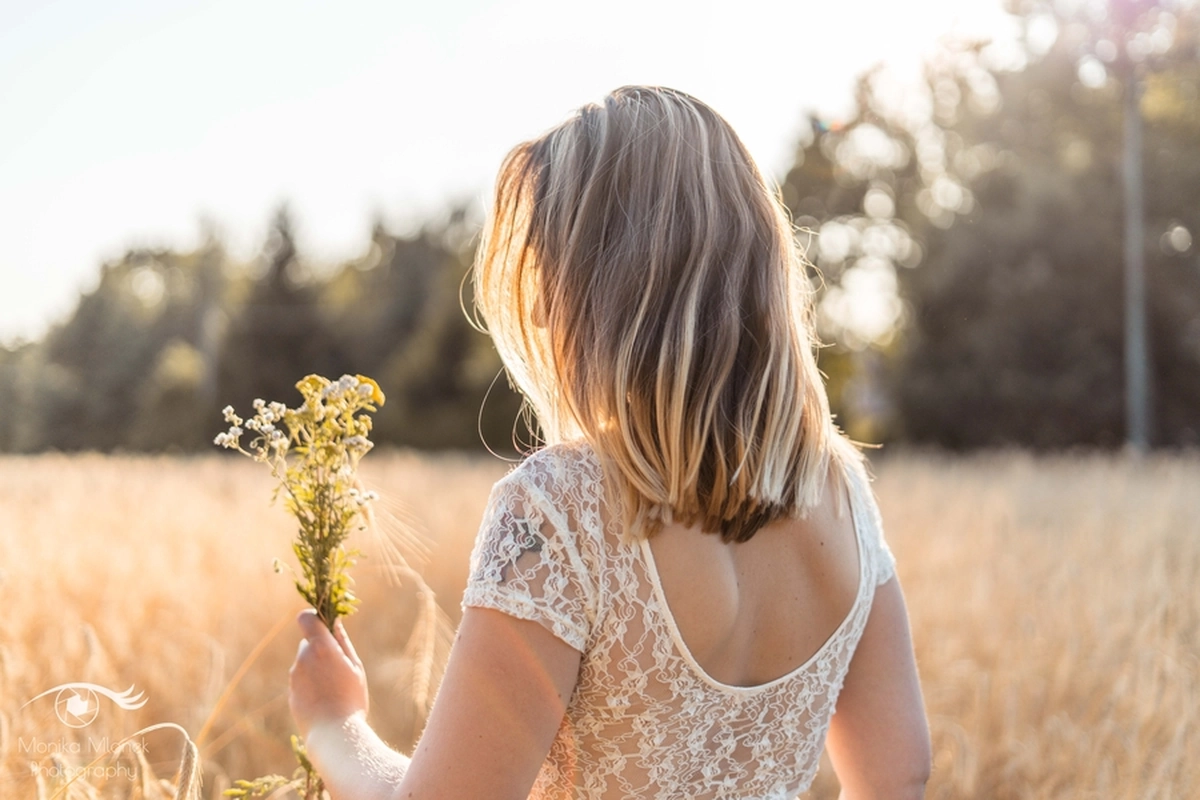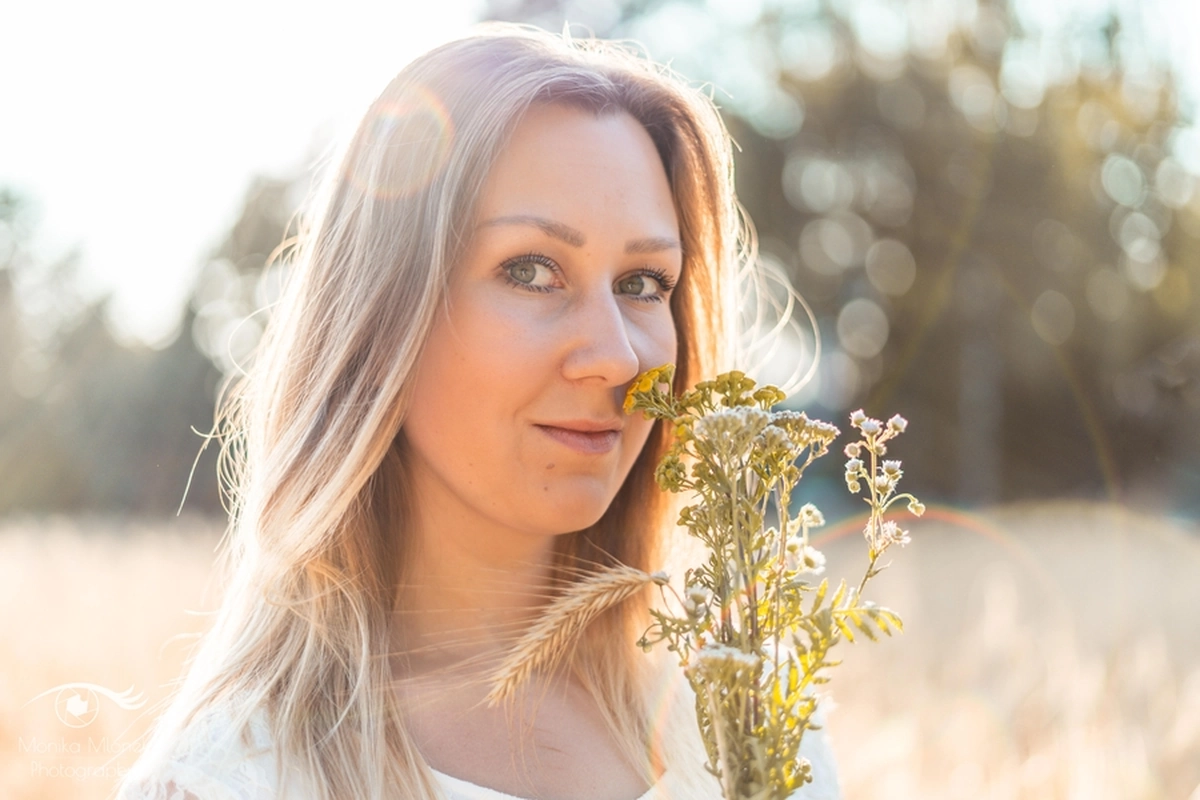 Lubię chodzić na spacery i jeździć rowerem w mniej zaludnionych obszarach, właśnie tak znalazłam miejsce na tą sesję. Przechodziłam obok pola, zobaczyłam piękne zboże i od razu wiedziałam, że chcę tam wykonać zdjęcia. Poszukałam osoby chętnej na sesję. w ciągu trzech dni napisała do mnie koleżanka Marta. Rozpoczęłam od razu przygotowania. Wszytko ustaliłam, najmniejsze szczegóły, makijaż, ubrania, rekwizyty. Na wyznaczonym miejscu spotkałyśmy się tuż przed złotą godziną. Marta, pomimo braku doświadczenia w modelingu, była bardzo naturalna i odważna, dzięki czemu sesja przebiegła bardzo szybko i sprawnie. Miałam ze sobą trzy sukienki do zmiany stylizacji dla Marty i mały bukiet z polnych kwiatów. Podczas sesji towarzyszyła nam muzyka, myślę, że praca z muzyką tworzy luźniejszą atmosferę i pomaga kreatywności. Przechodzący ludzie pozytywnie odbierali moją twórczość, uśmiechali się do nas i pytali o sesję ?