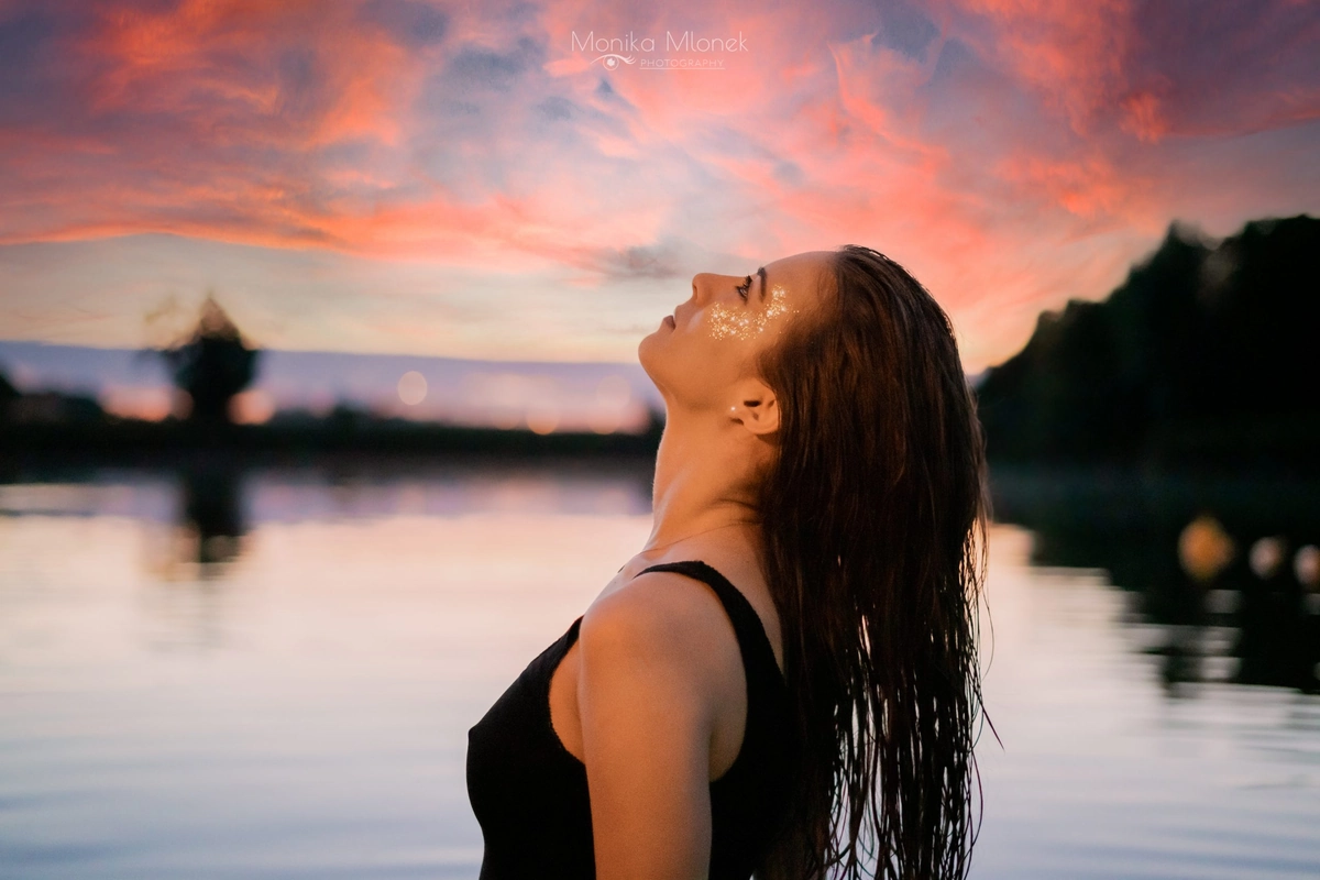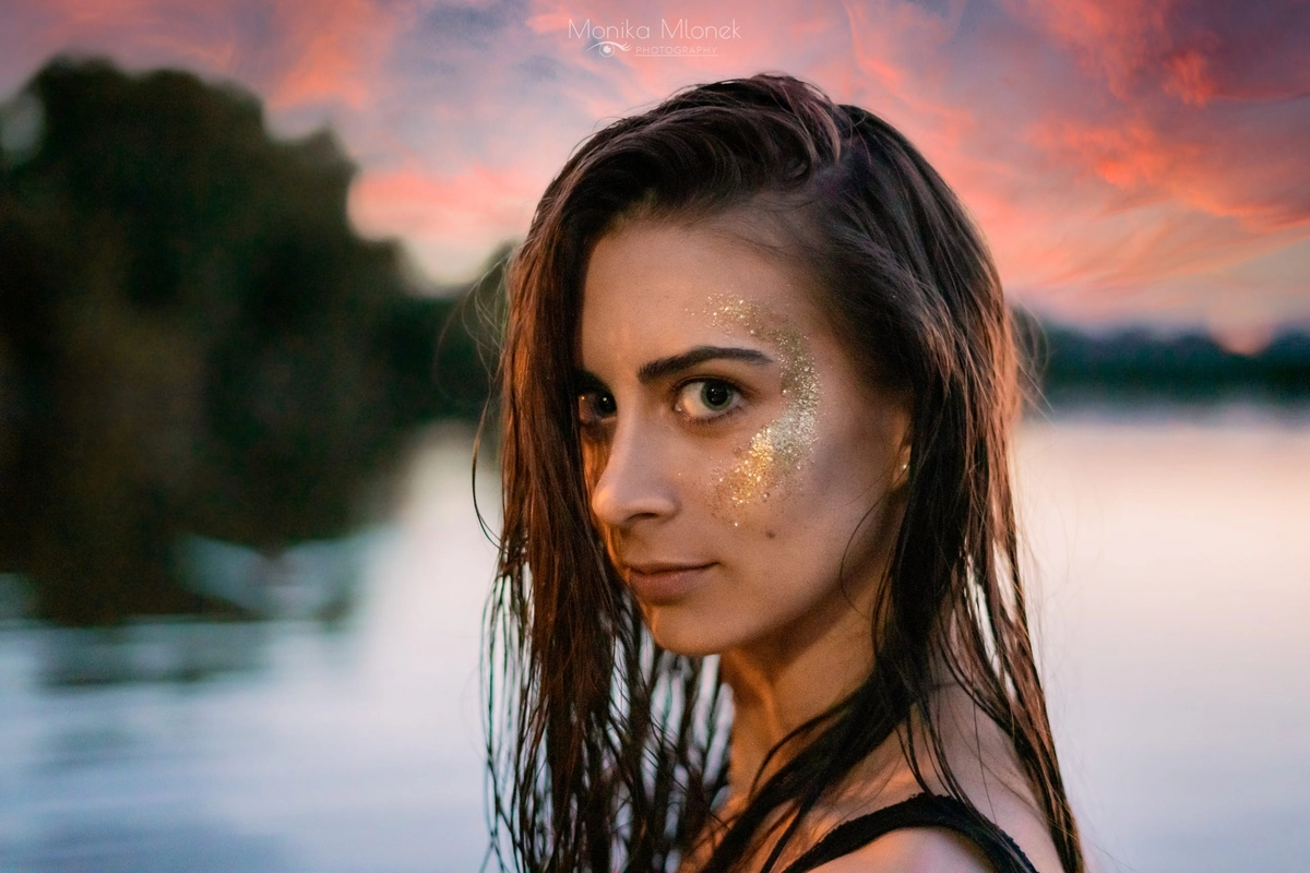 Godzina 21:00, Ania zrobiła ponownie mały make-up (na kolanie), ponieważ poprzedni zmył się w wodzie, a następnie przykleiłam brokat (na błyszczyk) na boku twarzy. Poszłyśmy nad brzeg wody i zrobiłam kilka ujęć. Zdjęć było mało, ale tyle wystarczyło, nie chciałam przedłużać jeszcze bardziej. Zaczęłyśmy się zbierać, odwiozłam Anię i wróciłam do domu. W domu zgrałam tylko zdjęcia z karty SD tak, aby były gotowe na następny dzień do sortowania, a później do obróbki.