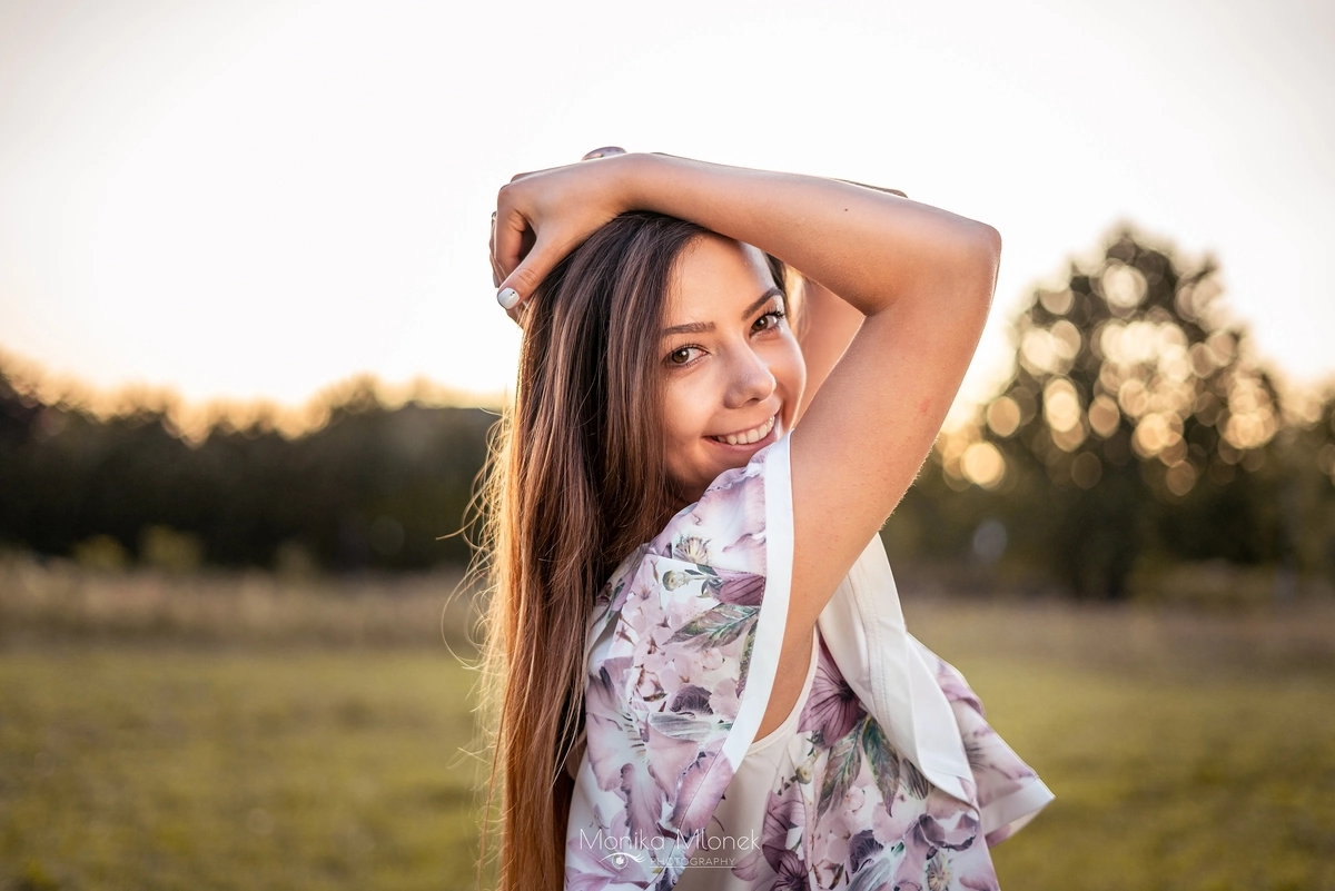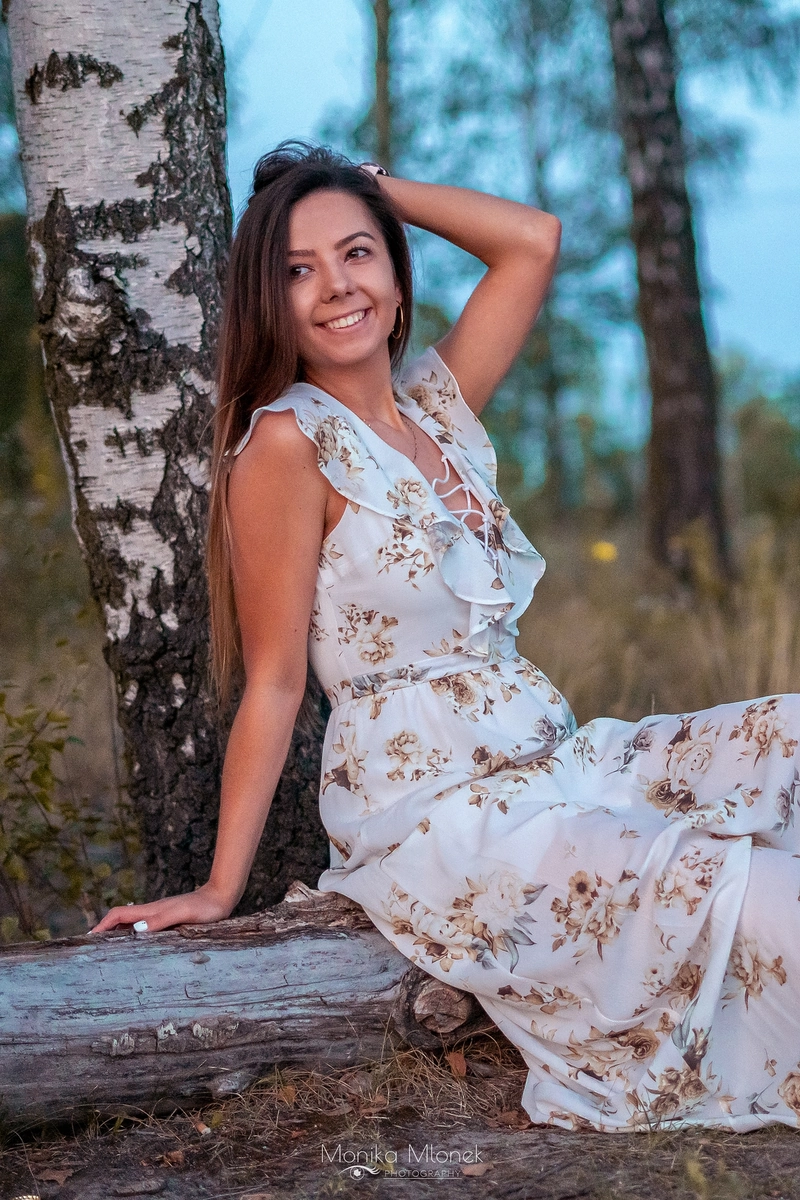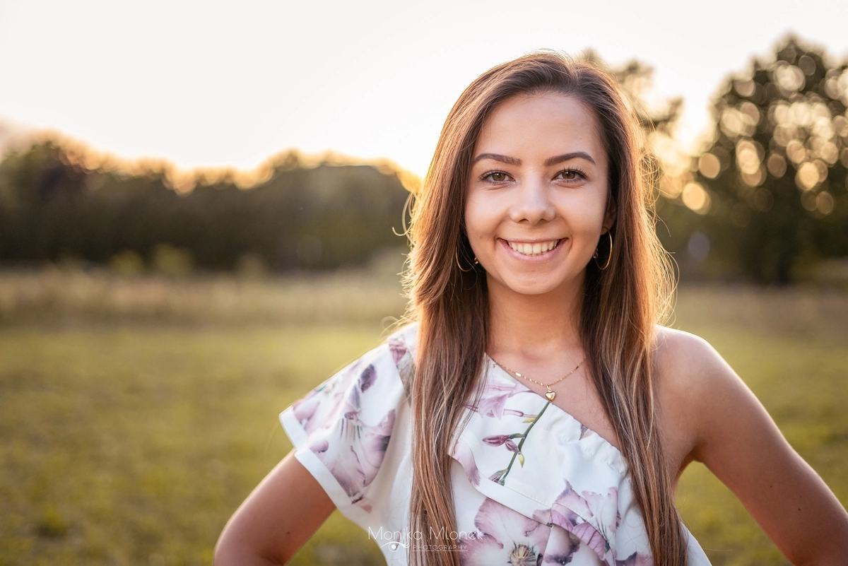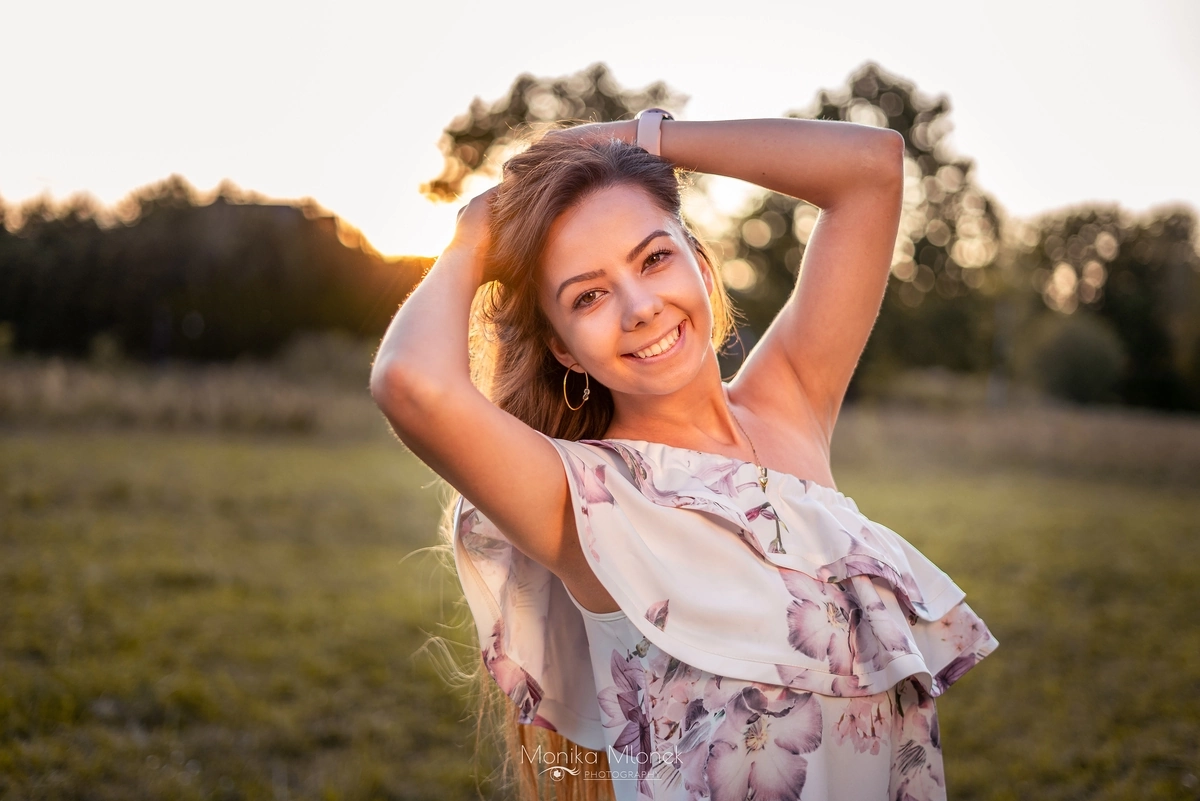 Jest to kontynuacja zdjęć „Sesja na rocznicę ślubu”. Jak pisałam w poprzednim wpisie, cała sesja trwała około 3 godziny i była podzielona na dwie części, pierwsza część to zdjęcia rocznicowe pary, a druga to portret indywidualny. Kiedy słońce zaczęło zachodzić, zaczęłam robić portrety Magdzie. Chciałam przede wszystkim pokazać jej naturalną urodę, która idealnie komponowała się z zachodem słońca oraz garderobą. Mówi się, że oczy są zwierciadłem duszy, ja jako artysta jak najbardziej w to wierzę, dlatego robiąc zdjęcia zwracam dużą uwagę czy aparat łapie ostrość właśnie na oczy. Sesja trwała bardzo długo, od zachodu aż do zmroku, dzięki czemu mam wiele niecodziennych, ciekawych ujęć. Zakończyliśmy zdjęcia około 21:00, wróciłam do domu i zgrałam zdjęcia z karty SD na dysk zewnętrzny, a następnego dnia zaczęłam segregację. Obróbka trwała długo, około dwa tygodnie, ponieważ miałam ogromną ilość zdjęć do segregacji (prawie 1000 zdjęć z sesji) i obróbki. Końcowy efekt bardzo podobał się Magdzie i jej mężowi, a to mnie najbardziej cieszy.
