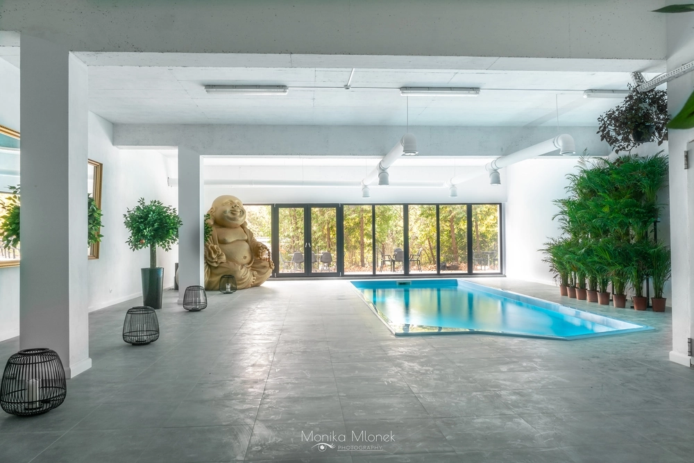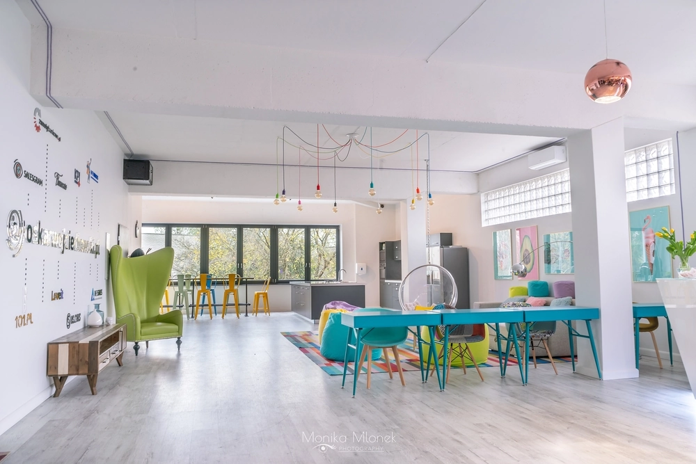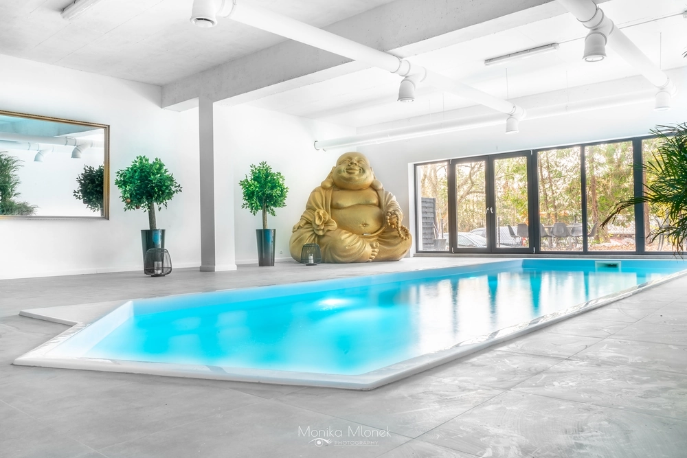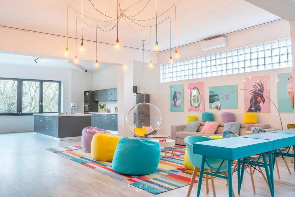 Na początku chciałam zrobić zdjęcia powierzchni basenowej, czyli „Cool Pool”. Znajdywał się tam wielki, złoty posąg Buddy oraz palmy i świeczniki, które dawały temu miejscu tropikalną atmosferę, a po chwili można było zapomnieć, że jest się w Polsce i niemalże przenieść do ciepłych krajów. Następnie poszłam piętro wyżej i zrobiłam zdjęcia dużej kuchni oraz strefy kanapowej, czyli „Cook&Chill”. Szafki kuchenne były w stylu skandynawskim, a obok panowały piękne pastelowe kolory, dywan, lampa i żyrandol „old fashion” i podwieszane siedzenie wychodziły rewelacyjnie na zdjęciach. I to był koniec na ten dzień, ponieważ zaczęło się już ściemniać. Następnego dnia zaczęłam od powierzchni biurowej, tutaj był już znany wszystkim schemat, czyli równo ustawione biurka, krzesła i gdzieniegdzie kolor, a później udałam się do biura prezesa, gdzie widać stół konferencyjny i i jedno stanowisko. Zdjęcia, które miałam wykonać miały obejmować wszystkie wnętrza, włącznie z toaletami, więc następnym punktem były właśnie one. Nie były to zwykłe nudne WC, tylko toalety z prysznicami, wannami i kolorowymi tapetami. Po skończeniu zdjęć na pierwszym piętrze, przeniosłam się na drugie piętro, gdzie jest pusta powierzchnia z kilkoma kanapami. I to był już koniec zdjęć, później już tylko obróbka. Sesja wnętrz zajęła mi dwa dni, a jak na pierwszy ogień jestem zadowolona ????